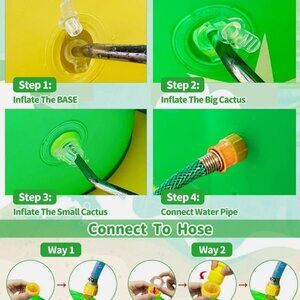 Easy Set up: Inflate the Cactus base using an pump, connect it to a garden hose with a hose connector, and secure it with two hose clamps. Adjust the spray width easily by controlling the water pressure, allowing kids to start water games quickly