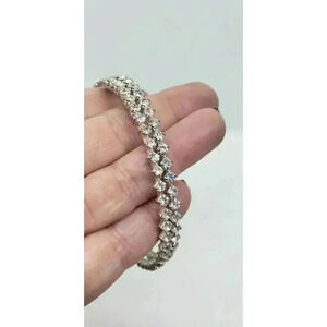 Gorgeous vintage earrings. These hoops measure more than 3" across. They are pierced with a clasp (see pcs) and are covered all the way around the hoop with faceted prong set clear rhinestones.