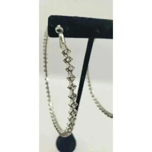 Gorgeous vintage earrings. These hoops measure more than 3" across. They are pierced with a clasp (see pcs) and are covered all the way around the hoop with faceted prong set clear rhinestones.