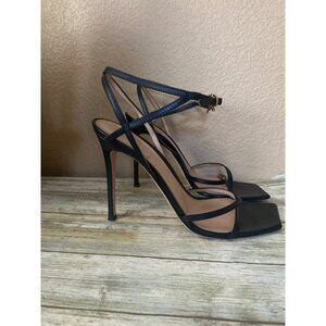 Gianvito Rossi Black Leather Strappy Stiletto Sandals Square Toe Sz 39