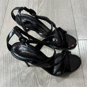 Gianvito Rossi Black Patent Leather Strappy Sandal Heels