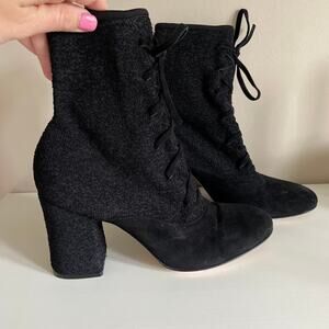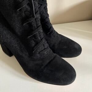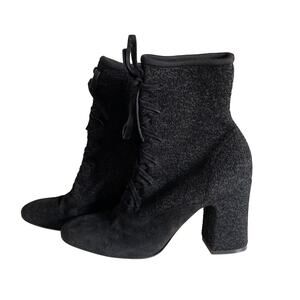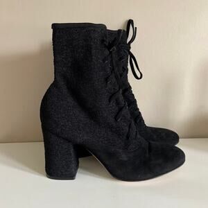 Gianvito Rossi Black Suede and Boucle Lace Up Sock Heel Booties Danis 40.5 10.5
