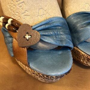 Gianvito Rossi Blue & Brown Leather High Platform Sandals size 38 (7.5)