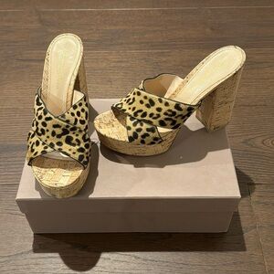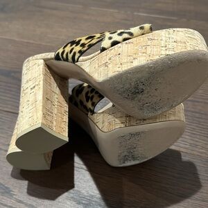 • 4.5" cork block heel; 1.3" platform; 3.2" equiv.