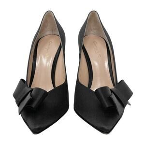 Gianvito Rossi Kyoto Black Satin Bow Pointed Toe Pumps 37