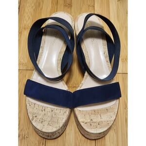 Gianvito Rossi Navy Blue Suede Cork Wedge Platform Ankle Strap Sandals Size 40
