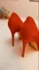 Chic red suede heels by Gianvito Rossi. Sleek design with a pointed toe. Perfect for elevating any outfit.