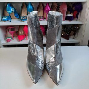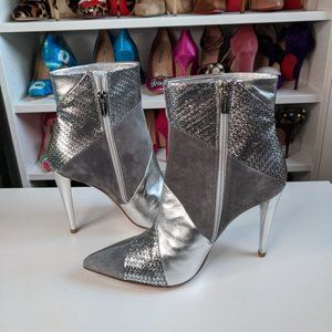 Gianvito Rossi Silver Leather and Suede Ankle Boots