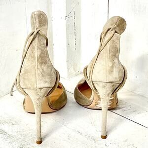 Gianvito Rossi Suede Ankle Tie Pointed Toe Stilettos Pumps Beige Women's Size 40 / 9.5
