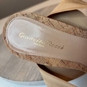 Up for sale: Gianvito Rossi Suede Cork Sandals Elastic Ankle Strap Beige EU Size 38.5 US Size 8.5 Made in Italy. This is a genuine designer piece, crafted with the quality and detail you’d expect from Gianvito Rossi. Condition is great — the soles do show some signs of wear, but overall in great condition! Please see photos for details. Original purchase price was $795.