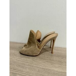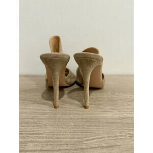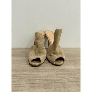 Gianvito Rossi Suede Slip On Peep Toe Stilettos Mule Beige Women's Size EU 37