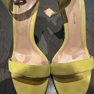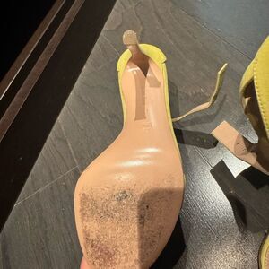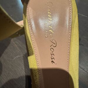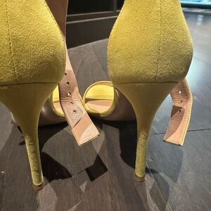 These Gianvito Rossi heels feature a vibrant pastel yellow suede-like upper that exudes elegance. The smooth leather insole adds comfort, while the precise craftsmanship ensures a polished look. Perfect for elevating any outfit with a touch of color.