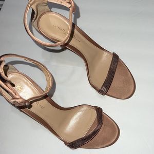 Like new, no damage, they have protective soles but i can remove them prior shipping if desired, color is rose gold