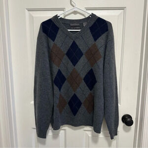 Giasone V-Neck Argyle Sweater Men Gray 100% Cashmere Size Large