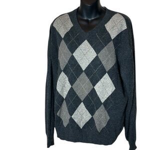 Giasone men’s 100% cashmere sweater grey argyle large cozy quiet luxury