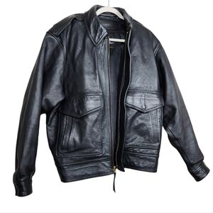 Gibson & Barnes Black Leather Airline Pilot Skyliner Bomber Jacket Men's Size 40 Talln equivalent to a Medium/Large, please check measurement