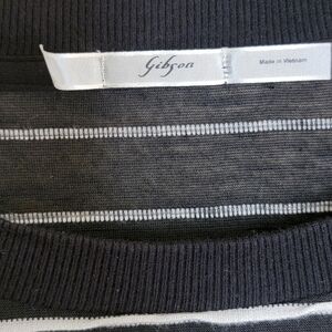 Gibson | Black & White Striped Long Sleeve Top with Decorative Side Buttons