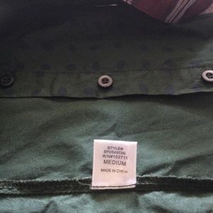 Gibson Button Down Polka Dot Blouse Contrast Plaid Collar and Cuffs SZ M