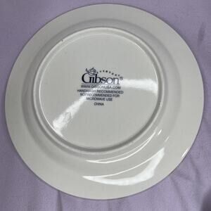 The product is a set of 4 Gibson ceramic salad plates with a Poinsettia pattern, perfect for a Christmas occasion. Each plate measures 7 1/2 inches and features a charming multicolor design. The set includes 4 salad plates with the Poinsettia pattern by Gibson.