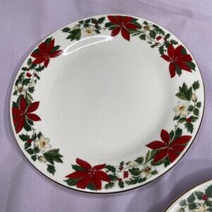 Gibson Christmas "CHARMING POINSETTIA" Set of 4 Salad Plates 7 1/2"