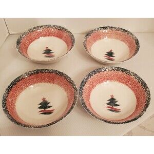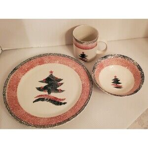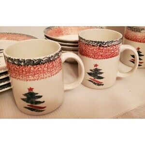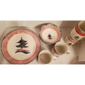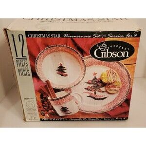 Gibson Christmas Star Dinnerware Set New 12pc Tree Spongeware Bowl Plate Mug Y2K