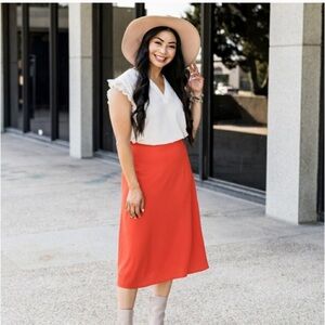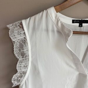 Style beyond the staple tee in this chic notched-neck top cut with a graciously curved hem and romanced with fluttery, scalloped lace trim. This sweet piece that's easy to dress up or down is made in collaboration with Houston-based lifestyle, fashion and DIY blogger Roselyn Weaver.