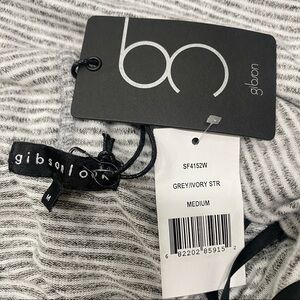 Gibson Convertible Cowl Neckline Cozy Tunic In Gray/Ivory Stripe Size Medium NWT