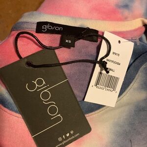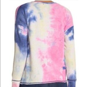 Gibson Crew Neck Long Sleeve Tie Dye Blue Fucsia Top