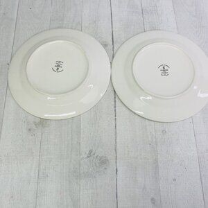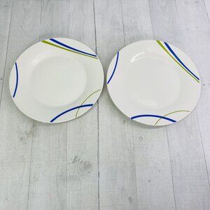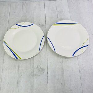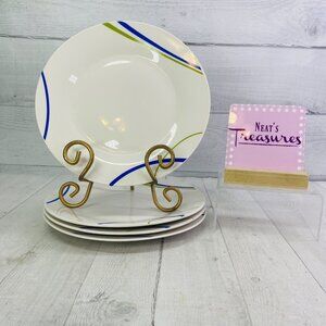 Gibson DIVINE STREAMS Blue Green Lines White Porcelain 9" Dinner Plate Set of 4