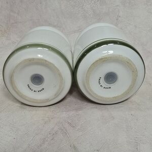 The shakers feature a palm pattern, are made of ceramic, and must be hand washed.