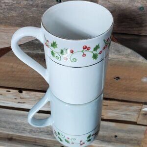 Gibson Designs - Christmas Charm - Coffee Mug - 4 1/2" tall. Discontinued. Excellent Condition. Holly & Berries on top edge. Gold trim.