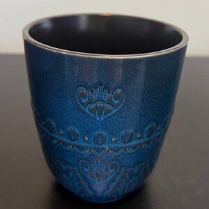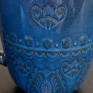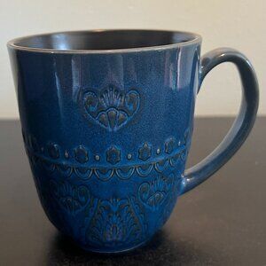 Gibson ELITE Blue Glazed Mug with Black Embossed Damask Floral Medallion Pattern