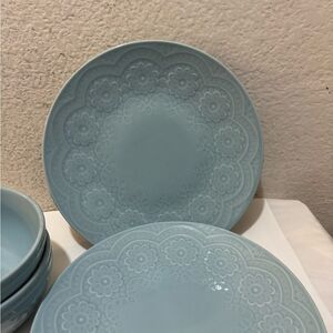Gibson Elite Alemany 3 Piece Dinner Plate & 2,Salad bowls Dinnerware Set, Aqua