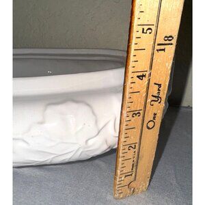 This Gibson Everyday White Ceramic Tureen is crafted with elegance, featuring a lid and ladle. It is dishwasher and microwave safe, ensuring easy maintenance and functionality. The intricate embossed fruit design adds a touch of sophistication to your dining table. This piece is versatile for serving soups and stews.