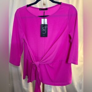 Gibson Fuchsia Tie Front Top Blouse NWT SZ XS
