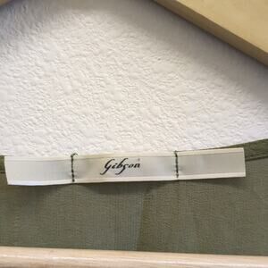 Gibson Green Boxy Blouse with Relaxed Fit and Red Accents size small