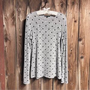 Gibson Grey & Black Classic Polka Dots Lightweight Long Sleeve Sweater Sz S