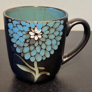 Gibson Home Designs GARDENIA CAFE Stoneware Mug ~ Turquoise on Black
