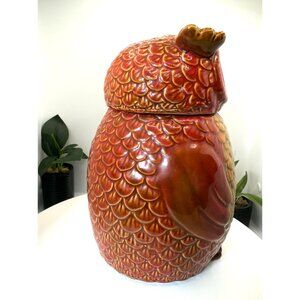 Gibson Home presents a charming multicolor ceramic owl cookie jar that is both practical and decorative. Its brunt orange and tan colors add a warm, rustic touch to your kitchen.