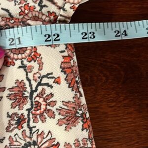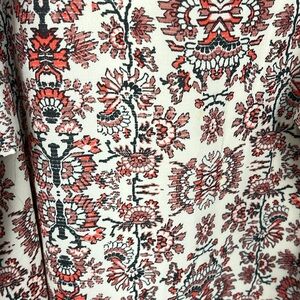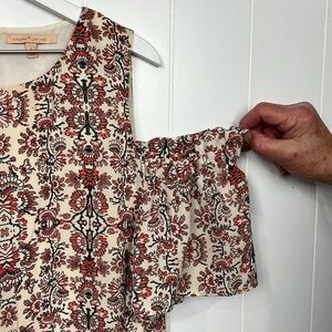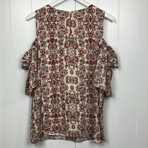 Gibson & Latimer Womens Top/Tunic L Orange/Cream Cold Shoulder Ruffle Neckline Lined Aztec Print Unique Stylish EUC