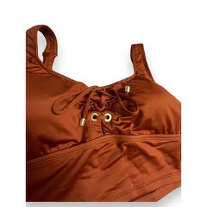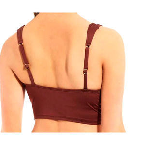 Gibson Latimer Bikini Bralette Lace-up Midkini Crop Top | Sz S, Bronze