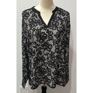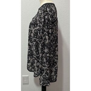 Gibson * Latimer Black Floral Print Long Sleeves Rounded Hem Tunic Size L