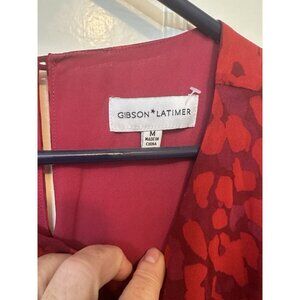 Gibson Latimer Dress Red Midi M Flowy Elastic Waist Keyhole Close Sheer Ruffles