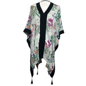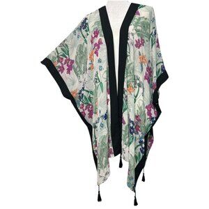 Gibson & Latimer Floral Print Kimono Cardigan With Tassels Oversized Size Small