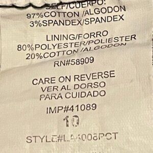 Approx. Measurements: Rise 9.5”, Waist 32” (unstretched), Inseam 28”, Leg Opening 11”