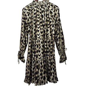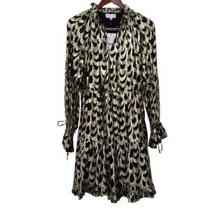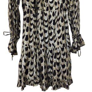 Gibson & Latimer Gold Metallic Ogee Print Tiered Mini Dress Womens M Party Event