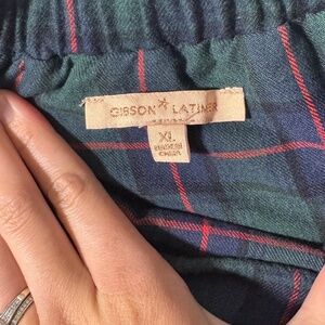 Gibson & Latimer Green Plaid Ruffle Neck Blouse Size XL