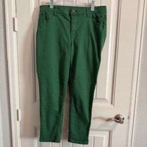 Gibson Latimer Kelly Green Crop Skinny Stretch Denim Jeans Roll UP Cuff Size 16