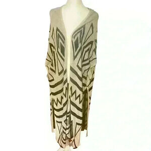 Gibson Latimer Long Open Front Cape/Drape. Black and tan abstract design.