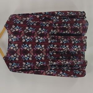 Gibson Latimer Pullover Babydoll Blouse Half Button Floral Print Size Large